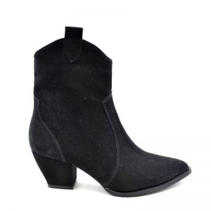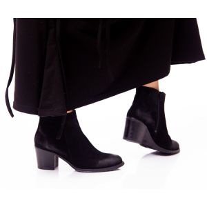 1. Botine de dama cu toc din piele naturala intoarsa - Gri